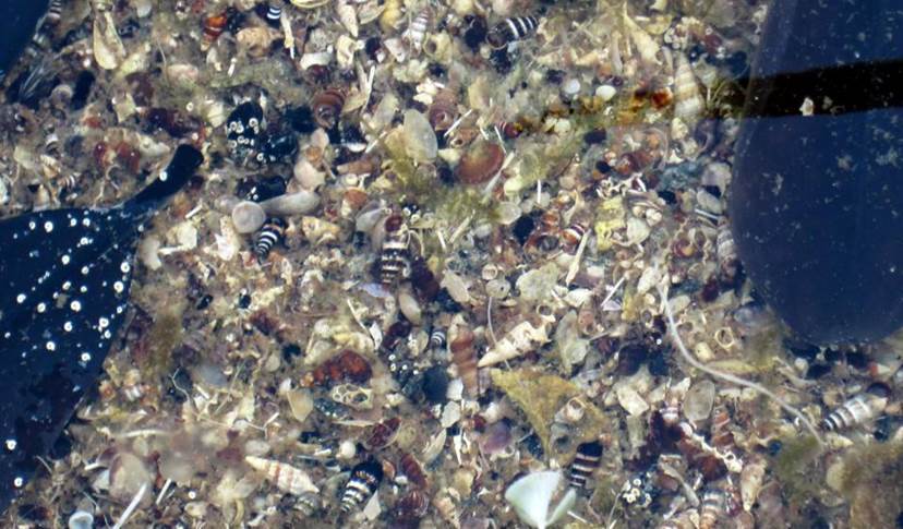 overwhelmingly dominated by mollusc shells and broken mollusc shells.