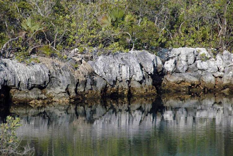 subvertical limestone walls. The rocks are Cockburn Town Member of the
