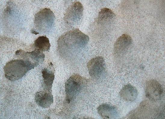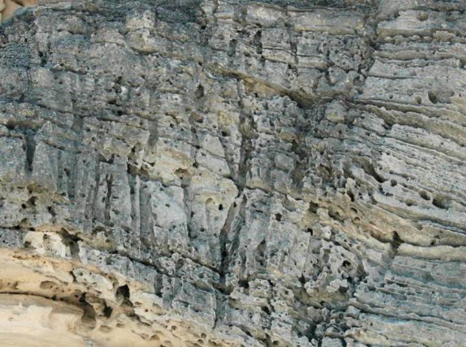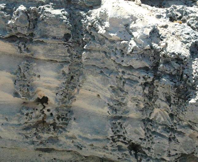 Inferred ant burrows in back-beach dune facies calcarenites (Hanna Bay