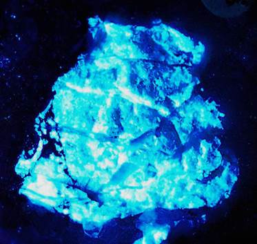 scheelite under ultraviolet light; scheelite usually fluoresces a bright blue