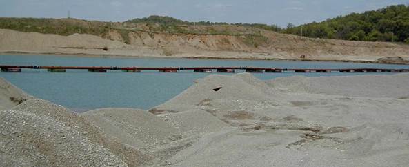 consisting of water-deposited sand & gravel deposits of Late Pleistocene