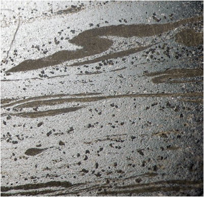 ore rocks have interesting contorted banding. This is an unusual example