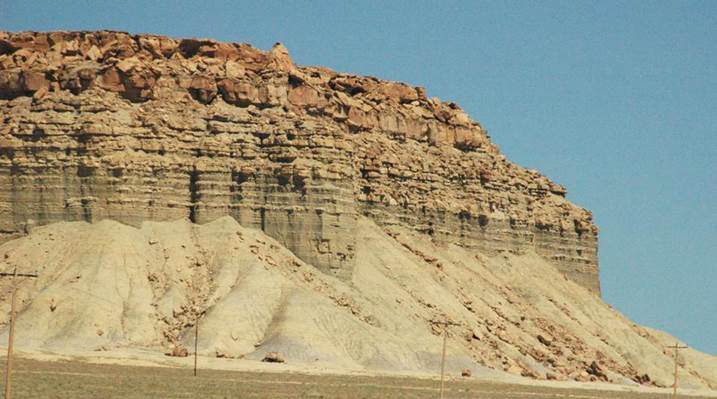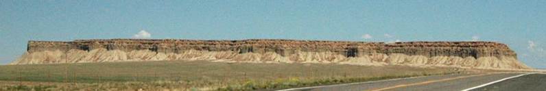 hard sandstones, which weather slowly to form the flat-topped mesa. The