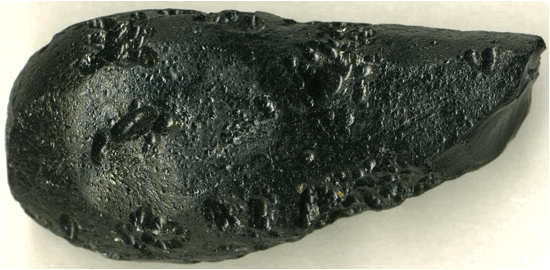 Indochinites are black-colored, moderately common tektites from southeastern Asia