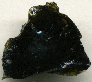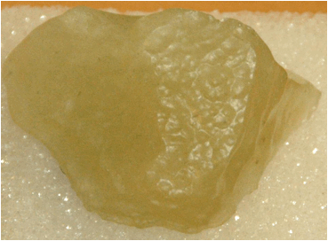 Moldavite (2.5 cm tall), derived from >4 meters below the land surface, below