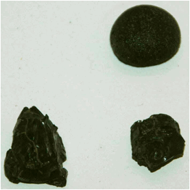 Broken surfaces show a conchoidal fracture. Tektites from different