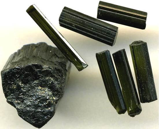 tourmaline. Other varieties include achroite, elbaite (Li & Na-rich),