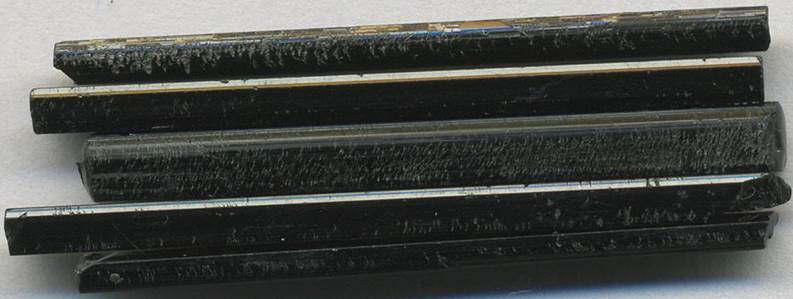 Schorl tourmaline (large one at lower left is 13 mm across; smaller