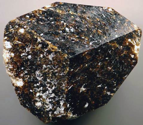 can be given the formula (Na,Ca)(Li,Mg,Al)(Fe,Mn,Al)6(BO3)3(Si6O18)(OH,F)4