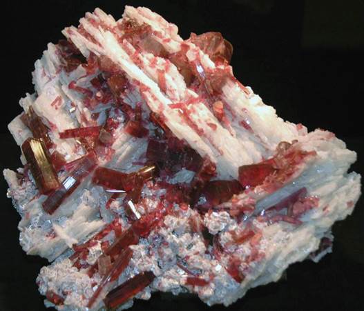 Elbaite tourmaline (red) & albite feldspar (white, NaAlSi3O8)