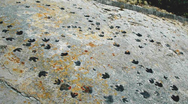 Dinosaur tracksite - dinosaur-trampled sediment surfaces are referred to