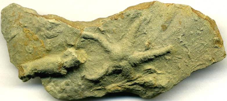 Asteriacites on underside of very fine-grained quartzose sandstone (rock is 7.0 cm