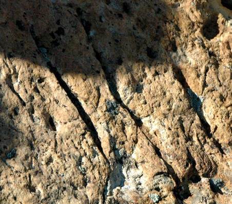 here is a convex hyporelief on the underside of a very fine-grained sandstone
