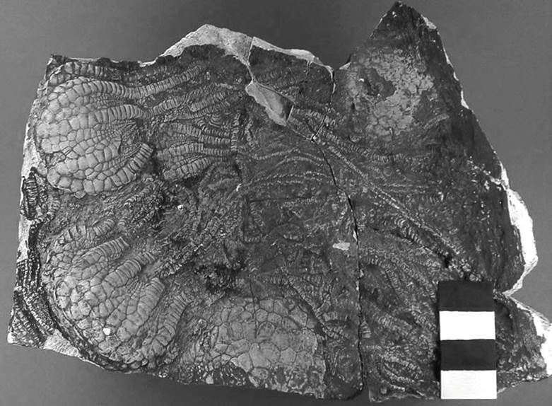 soft parts has been identified in some Uintacrinus slabs. Black,