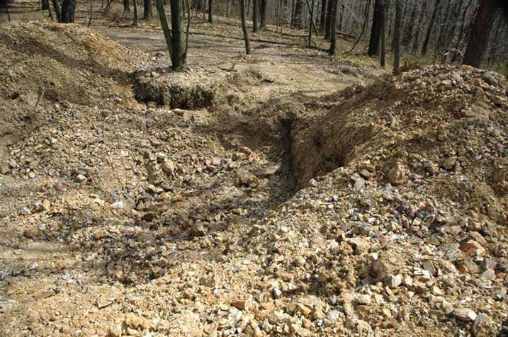 outcrop in main pit at Nethers Flint Quarries, Flint Ridge, Ohio. The
