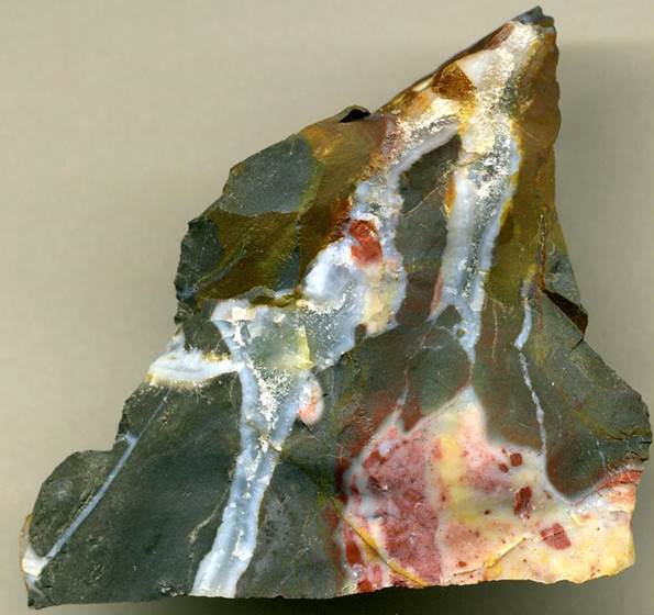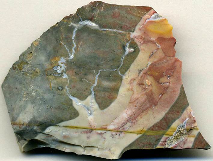 bottom) - complex, multicolored specimen of brecciated pinstripe flint with