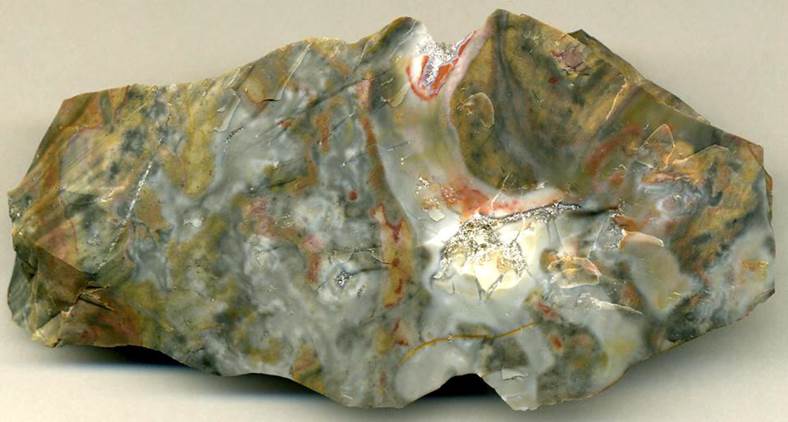 bottom) - multicolored banded chert with whitish-gray chalcedony- &