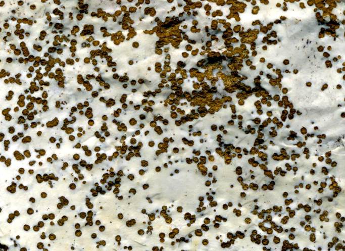 across) - oolitic flint. Oolites are sand-sized, concentrically-layered,