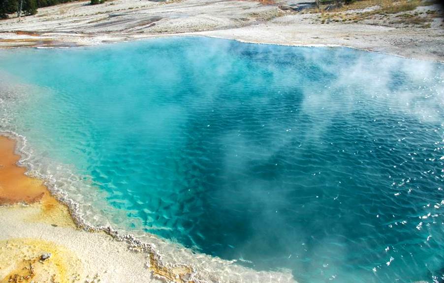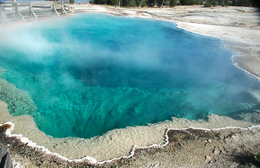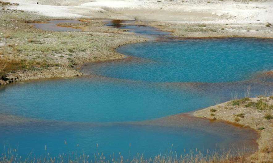 Bluebell Pool is the smaller, bluish-colored, steaming pool at upper