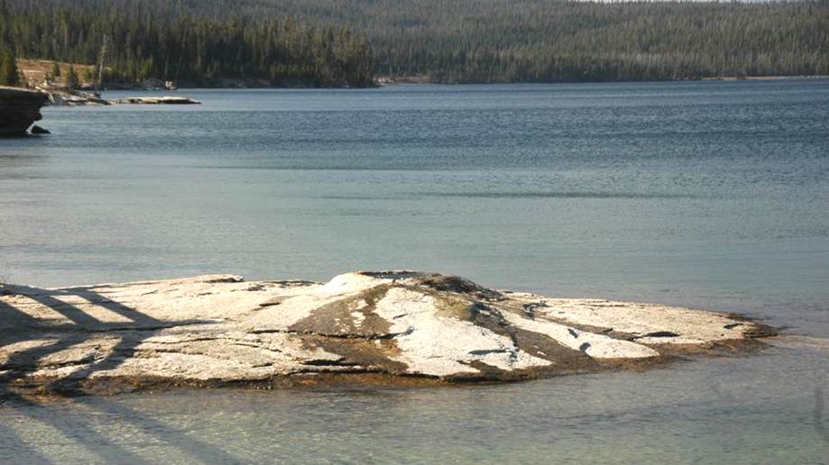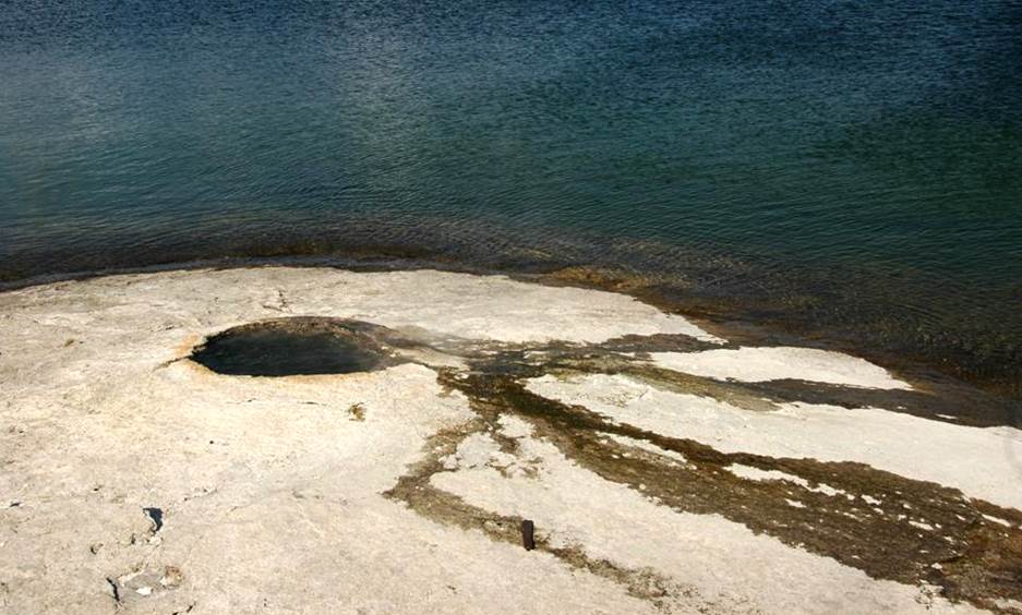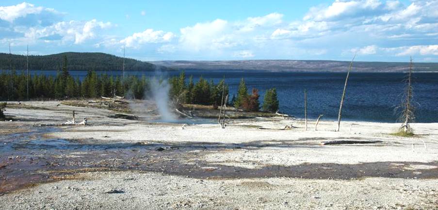 below photos) is located along the southwestern shore of Yellowstone Lake’s