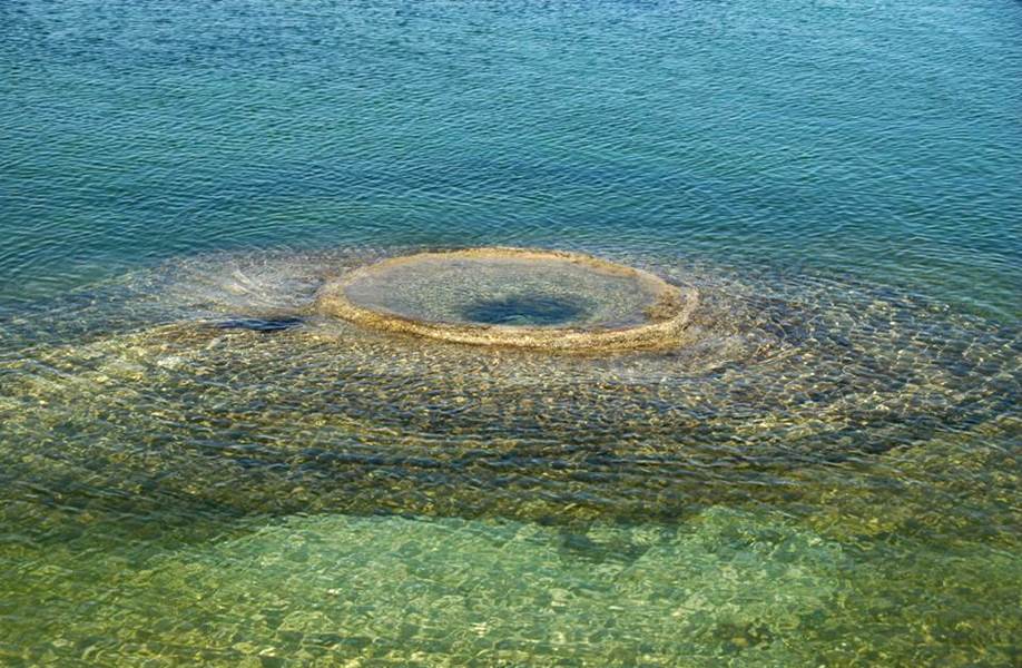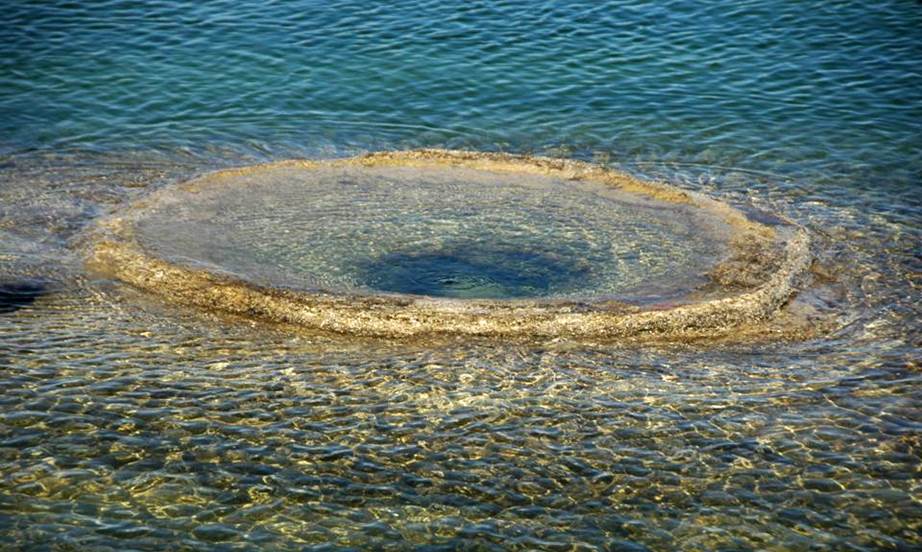 Thumb and is partially to completely submerged by lake water. Low lake levels are required for geyser