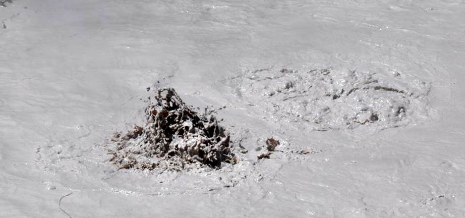 three photos below had a short-duration, spurting eruption on 6 July 2012. Fresh, low-viscosity mud quickly spread out