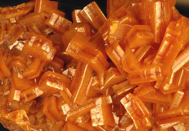 Wulfenite crystal cluster (field of view ~4.3 cm across).