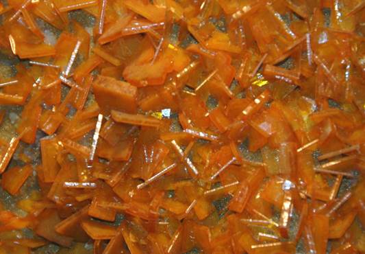 crystals. Wulfenite is lead molybdate (PbMoO4). The lead