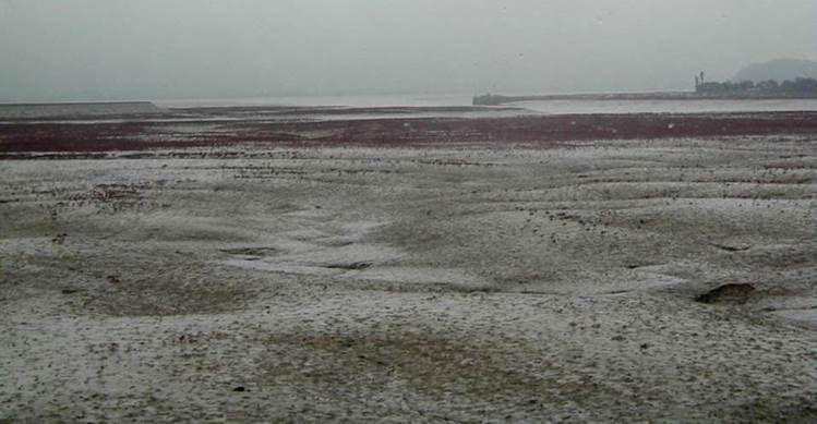 tide, this entire area is flooded by the sea (the Yellow Sea).
